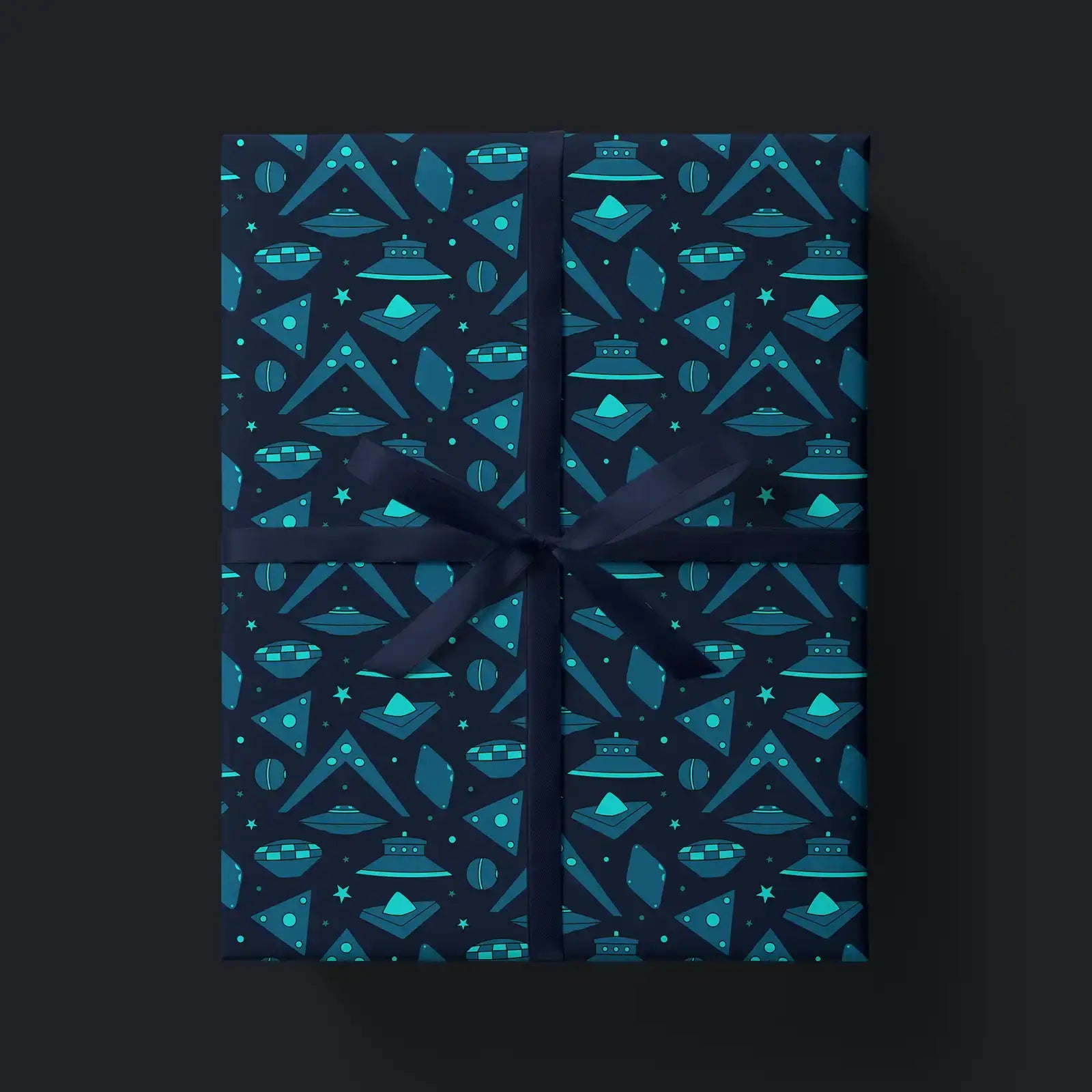 Wrap your gifts in mystery. This UFO-themed wrapping paper is patterned with flying saucers inspired by real documented UFO sightings, giving your presents a unique finish that’s out of this world.
